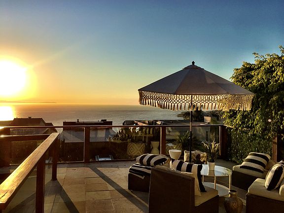 VIEWS, VIEWS and SUNSETS! Finally, an affordable home in Laguna Beach with the BEST views you can get!!! FREE Trolley to beach and town right out front! The ground level garage fits 1 car, and has a washer and dryer and lots of storage. Up the stairs to the second level, is a bedroom with bathroom and feels like a small apartment because of its private entrance. Great for guests, young adult or rental. Upper level and main house begin with a fabulous oversized terrace for sunset wines and BBQ's. The views continue to the open kitchen and living room with natural wood soaring ceilings and cozy gas fireplace. Down the hall, 2 bedrooms and one brand new bathroom with tub and shower combo and porcelanosa tile. A private patio off the bedroom in the back, is the perfect oasis. This cool/beachy modern home is total TURN-KEY with many recent upgrades and AIR CONDITIONING! This home is a great second home, residence or long term investment property.