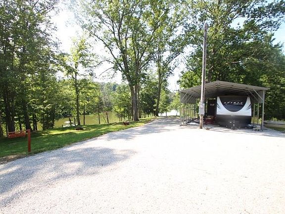 The best lakefront weekend get away ever and it even includes a pontoon boat to cruise on Beaver Lake! Located down a privately maintained road and on a point that includes 2 lots, you will find a top of the line 2019 Spirit Ultra Lite 3373RL that will blow you mind, including theater seats, fireplace, full bath and queen bed, along with 2 slide out, through storage, awning and pull out grill. It is parked under a 35x20 carport. Seller has placed a new 8x20 container for storage on the property and constructed a new boat dock featuring trex steps and deck for maintenance free living that will allow you more time to enjoy your 18' pontoon boat, perfect for fishing or slow cruising on Beaver Lake. This is a rare find so don't miss out. Do not use GPS, call for directions. Buyer or buyer's agent to verify all aspects of this property