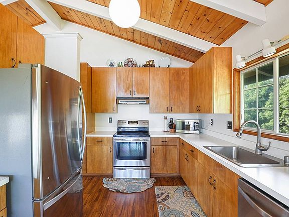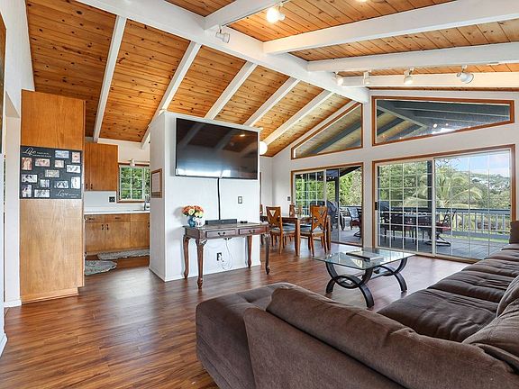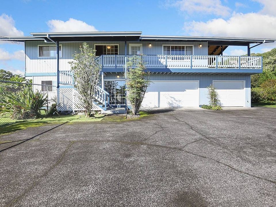 Located in an established neighborhood in Waiakea Uka, this home is perfect for those looking for the privacy of a dead end street. Sitting on top of a hill, it offers a nice view and a gentle breeze, also catching a lot of sun with its solar system. This house was home to only one family since built, and meticulously cared for as their precious family abode. The cathedral ceiling over the kitchen, dining area and living room make the area extremely spacious as double sliding doors open to the large 336 square foot deck. Great for a single family, or even a multi-generational one; the second floor has two bedrooms and one and a half bathrooms while the first floor has two bedrooms and one full bathroom. A three car garage provides lots of space for your vehicles or additional storage. The fenced in yard is great for pets or to help keep children safe.