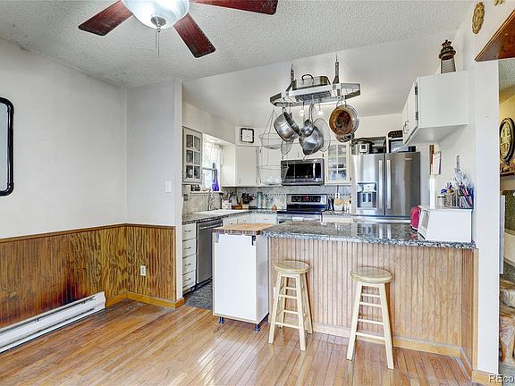 *A little bit of lovin' will go a long way on this true bi-level. *The recently remodeled kitchen has granite-tile countertops and island, tile flooring, a tile backsplash, and stainless steel appliances. Hardwood flooring in the adjoining dining room. *The upper-level bathroom has slate-tile flooring and a new jetted tub. *The lower-level floorplan is ideal for families, remote workers, and home schoolers, with two bedrooms (non-conforming), a large family room, and a recently remodeled bathroom. *A two-level Trex deck overlooks the large, square, and fully fenced backyard -- one-fifth of an acre! -- that has a plum tree, a pear tree, and a horseshoe pit. *The oversized garage -- with a built-in workbench and shelving -- has extra depth at the front, meaning more space to park longer vehicles. *Roof replaced five years ago. Electric baseboard heat and electric hot-water heater (replaced in 2021). *Walkable to Laredo Elementary, East Middle School, Hinkley High School, and Global Village International Preschool. Easy commute to DIA, Fitzsimmons, Buckley Space Force Base, and a bunch of nearby shopping.