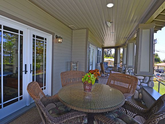 Beautiful craftsman home with panoramic ocean views! Central location in Olde Carlsbad with convenient access to beach, shopping, and freeways. Features include hardwood flooring, wood frame windows, and open kitchen that includes custom cabinetry, granite counters, custom mosaic tile, stainless steel appliances, island workstation & dining bar, breakfast nook, & custom wine cellar. The master bedroom features a fireplace, Jacuzzi tub, private patio and ocean views. This is gorgeous Craftsman house with top end construction and custom decor. The grand entrance opens to a cozy living room with box beams, a Heat and Glo heat appliance fireplace, and french doors that lead to the large wrap around porch. Perfect for entertaining, relaxing and enjoying the ocean views. Custom kitchen opens up to the family room, dining room and breakfast sitting room. The kitchen boosts Custom Alder Cabinets, black Galaxy granite counter tops, GE Monogram appliances, Newport Brass faucets, high end stainless kitchen sink and large walk in wine pantry. FIVE bedrooms in the main house with the fifth used as an office. Bedroom with full bath on the main floor. Laundry room with separate entrance to the 600 esf Granny Flat with full kitchen, bath, and a large bedroom. The granny flat has a balcony with ocean view! The second floor has two bedrooms each with it's own bathroom. Spacious master bedroom with a fireplace, sitting room and large walk in closet. Amazing OCEAN VIEWS from it's balcony creates the prefect retreat. Gorgeous bathroom with over sized walk in rain shower and Jacuzzi tub with Ocean views. The third floor is the perfect area for a library, hobbies, or office. Three car garage (750 esf) with plenty of storage. Backyard has an awesome garden! Additional upgrades include a built in Bose surround sound system for the Master Bedroom, family room and porch. Three separate AC zones, Lutron lighting control system, fire sprinklers throughout, outside shower, plumbed for central vacuum, solid stained interior wood doors, rain gutters with copper rain chains, custom shower doors throughout, white subway tiles in bathrooms, paver driveway, all porcelain floor tile, and Santa Barbara plaster finish throughout.
