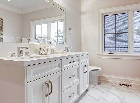 House For Sale With 4 Bedroom + 1 Bedroom Basement , 5 Washroom + 1 Washroom (Basement)And Finest Quality Of Finishes In Mineola Backing To Spruce Park With 10Ft Ceiling On Main Floor, Gourmet Kitchen With High End Appliances, Servery,Pantry, Walkout To Covered Porch With Cedar Ceiling , Floor To Ceiling Windows In Family Room, Professional Office, 4 Large Rooms With Ensuites And Closets. ,Master Bedroom With Heated Washroom Floor And Lot Of Upgrades.