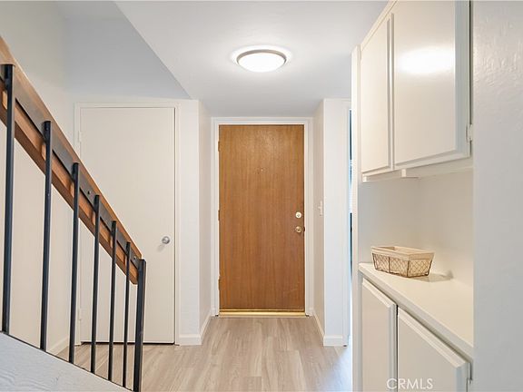 Turn Key Condo. This home has been updated and is Move-In ready. Upon entering the flexible floorplan offers an open concept, large living spaces and bedrooms and is Bright and spacious. The upgraded luxury vinyl flooring runs throughout. The home has recently been painted along with new fixtures and flooring. The Large living room is open to the kitchen and has an abundance of natural light. There is a good sized Dining area that looks out to the private rear patio. The kitchen cabinets are finished white with a breakfast bar area, good sized pantry and ample counter and cabinet space. The main level bedroom has vaulted ceilings with wood beams, a large closet and easy access to the main level full bathroom. The Laundry area is at the top of the stairs and provides additional storage space. The primary suite has vaulted ceilings with wood beams, a walk in closet along with 2 additional closets, access to a private balcony and a private bathroom. The Primary suite bathroom has a separate tub and shower and a dual sink vanity. This home has an abundance of storage space. closets/built in cabinets and a 1 car garage. This lovely community offers a pool, walking paths and Green space along with ample parking for you and your guests. The home is centrally located to freeway access and a close commute to Loma Linda Medical Center, local Universities, shopping and restaurants.
