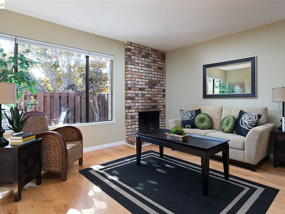 Two-story townhouse with two-car attached garage and cozy front yard. Stainless steel appliances, brick fireplace, master walk-in closet and high ceilings. Hardwood flooring with floating stairs to the first landing, tiled bathrooms and kitchen. Large entertaining area above the garage and relaxing balcony off the master. Enjoy the peaceful Rose Park Townhouse community, including a shared courtyard and clubhouse. Features include: -Hardwood floors -Stainless appliances -Attached two-car garage -Front yard -High ceilings -Energy efficient lighting -Updated bathrooms