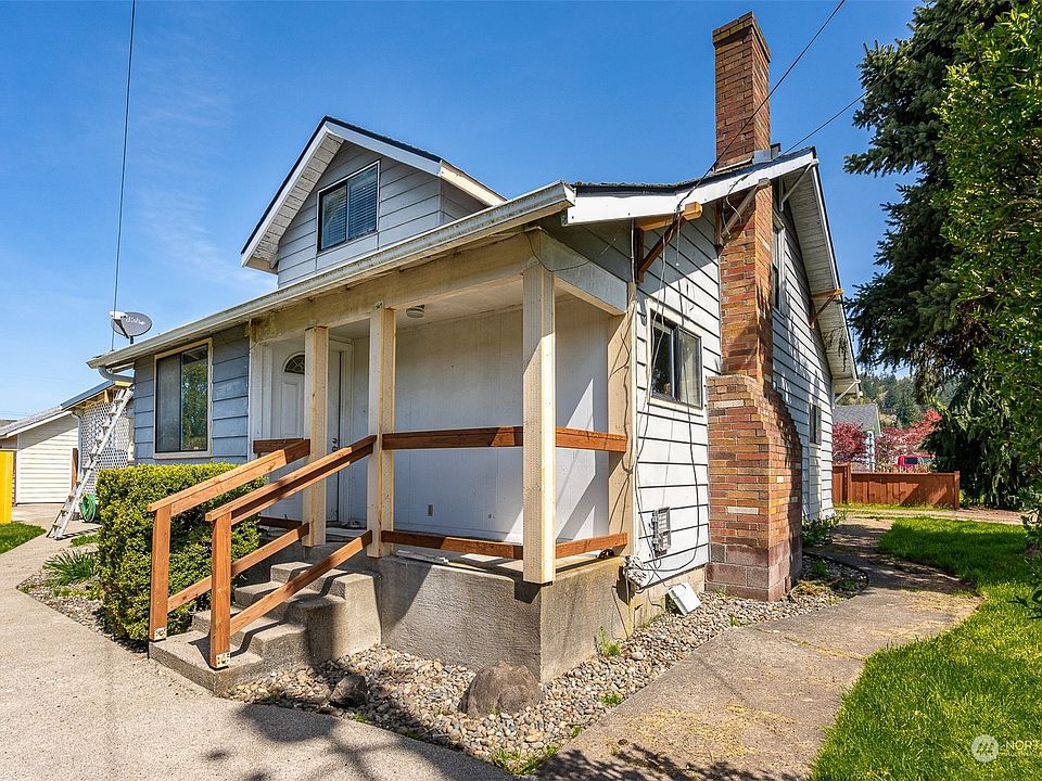 Freshly updated! Large corner lot with big yard. 5 bedroom home with 2 bedrooms on the main floor. En Suite bath in Primary bedroom. Huge kitchen with tons of storage. Wood burning fireplace, lots of light, covered back deck, new paint, new carpet, new fixtures, and more! Original hardwood floors upstairs and plenty of room for your finishing touches. Come check this home out today.