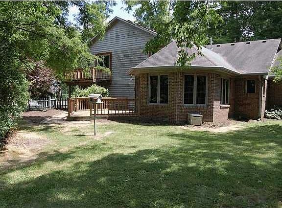 Very nice brick two story located on over 3 acres in Pendleton schools. This brick home features a large living room with fireplace, hardwood floors and backyard deck. The living room has vaulted ceilings and built in bookcases. The huge kithen has hardwood floors, center island with bar and all appliances are included. The private family room has vaulted ceilings and overlooks the back yard and pond. The master suite has a balcony, double closet and full bath. See virtual tour on line.