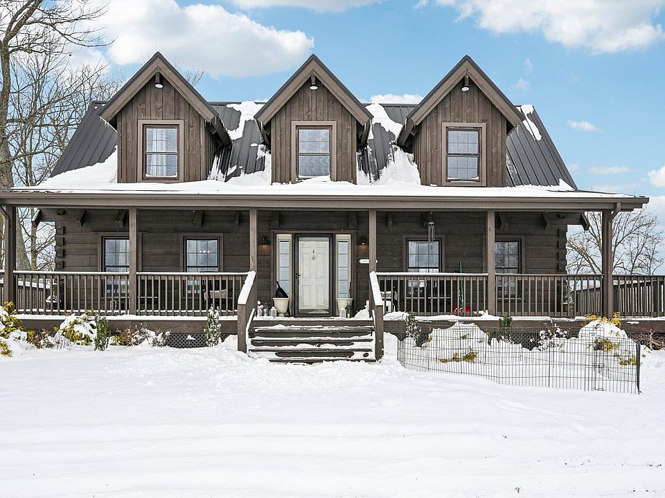.One of a Kind Estate . 2.59 acres . 4 Bedrooms and 3 full baths. Straight out of magazine type home with updates and upgrades everywhere. The outbuilding that can hold at least 6 vehicles is currently an Oasis of relaxation. TV's , bar, seating, barnwood decor with glass overhead doors that open to the incredible covered patio. Another outbuilding to house all toys and lawn equipment. The owner suite is in the lower level with a new full bath including his/her sinks and walk in shower. Farmhouse sink in the new kitchen with quartz counters. 3 more bedrooms up with vaulted ceilings. A possible Air B&B gem also...