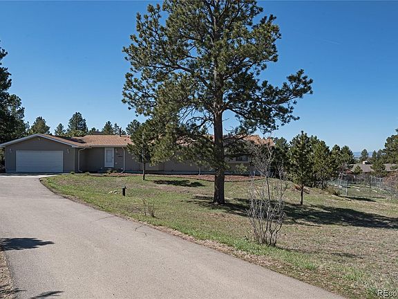 Enjoy Pikes Peak views and pines on this spacious 1.87 acre lot in unincorporated Douglas County. Rural living just minutes from all shopping in Parker or Castle Rock. Douglas County RE-1 schools. Beautifully updated ( 2017) country property with paved driveway off county maintained road. New kitchen (2017) with white shaker style cabinets, gorgeous granite counters, new bathroom cabinets, large island, glass back splash and stainless appliances. Solid oak flooring in living areas. Porcelain tile in bathrooms and laundry. Master suite has lovely windows and updated five piece bathroom with barn door. Huge unfinshed walk out basement awaits your imagination. Radon mitigation system in place. No HOA! Attached two car garage with opener. Deck off family room with access to nearly 2 acres of back yard with raised gardening beds and a rock lined path around the perimeter. Plenty of room for all your hobbies.
