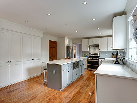 - Kitchen Features: Breakfast Bar, Eat-in Kitchen, Pantry, View to Family Room, Kitchen Island, Solid Surface Counters, Cabinets White