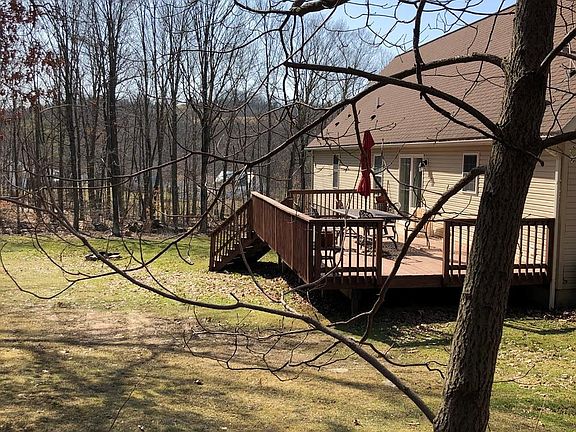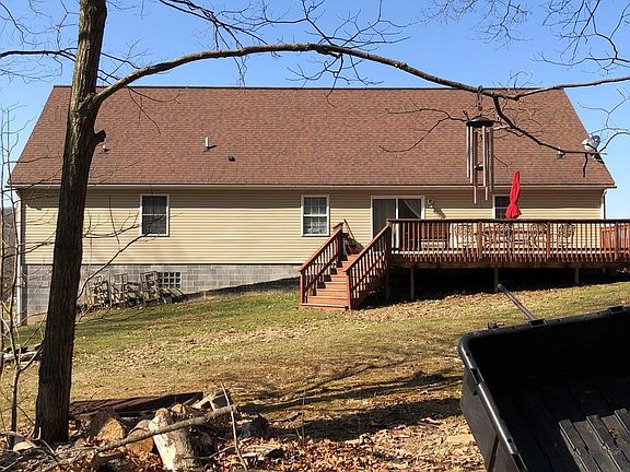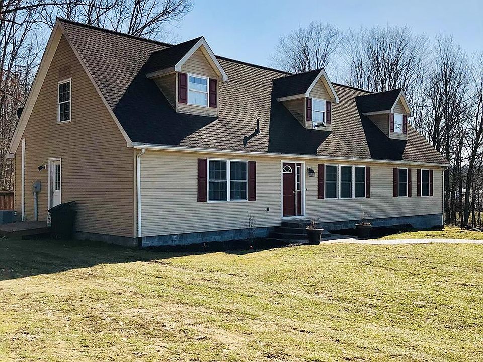 Large Cape Cod home on 3 acres, with 4 + Bedrooms and 3 full baths. Plenty of parking, even for your RV. Plenty of back yard space off the rear deck. Spacious house has lovely archway foyer that leads to a large Living Room and Dinning Room. There is a spacious eat-in kitchen and 1st floor Laundry Room. Check out the 1st floor Master Suite with master bath, Jacuzzi Tub and Dbl sinks.. There are 2 more bedrooms on the first floor with another full Bath. The 2nd floor is a huge space with 2 bedrooms, a game area and another full bath. The House is heated with 2 pellet stoves. There is an outside wood stove they have not been using. Central air furnace also has heat as a back up. The basement is huge and just waiting to be finished..24 hr notice