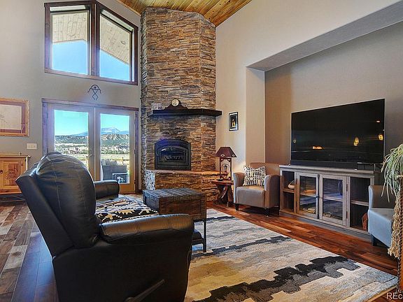 Imagine coming home every day to this 5 acre property at the end of a quiet cul-de-sac, with expansive views of the Collegiate Peaks, Sangre de Cristos, Browns Canyon, and Arkansas River Valley. The beautifully crafted home greets you with huge front and back covered patios with rustic metal trim and recessed lighting, wired for sound to transport you out of the year 2020 and into a state of peaceful serenity. Enter to find a beautiful rock fireplace with an Extraordinaire wood burning insert that circulates hot air into the living area. New Acacia hardwood floors throughout the home complement the vaulted beetle-kill ceilings and custom alder doors and cabinets. Striking granite counters draw you into the large kitchen, where you will find a 5-burner electric cooktop, convection oven, stainless steel appliances, custom bar lights by Salida artist Bryce Turnbull, subway tile backsplash and walk-in pantry. The master suite has a stunning picture window facing the Collegiate Peaks, a doorway out onto the patio, and a thoughtfully laid out master bath with separate vanities and gorgeously tiled walk-in shower. A huge mud room with half bath and laundry leads to the heated 2 car garage. Outside, the Sellers have created the perfect rural retreat. Picturesque private sitting areas are designed to take in each of the 360 degree views, with shady spots for summer reading and sunny ones for basking in the southern Colorado sun. A custom stone patio is the crowning touch in a fenced backyard that features stone walkways, xeriscaped garden areas with sprinkler irrigation, raised beds and a stylish greenhouse. The property is on an augmented well allowing outside watering. A new (2019) detached garage pairs an oversize RV bay with a 2 car heated, insulated garage and workshop space; sliding glass doors lead to a stamped concrete patio and additional seating areas to enjoy yet more of the endless views. Get ready to make yourself at home, because you'll never want to leave!