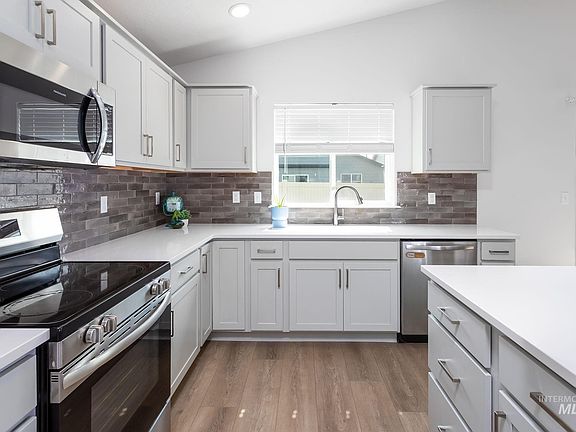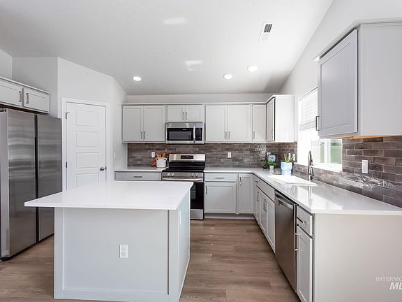 This stunning single-family residence offers a seamless blend of style, comfort, and functionality. With an open-concept design, the spacious living room flows effortlessly into the dining area, creating the perfect space for entertaining or relaxing w/ family. The kitchen overlooks it all—making gatherings easy & enjoyable.The kitchen features solid surface countertops, stainless steel appliances, a generous island for prep & seating, crown molding on all upper cabinets, and plenty of storage. It’s a true centerpiece of the home! Retreat to your private master suite complete with walk-in closet, a luxurious bathroom featuring double sinks, & a beautifully tiled stand-up shower with dual built-in seats. Other highlights include engineered vinyl plank flooring, soaring vaulted ceilings in the great room & dining, and modern finishes that add elegance & warmth to every corner of the home. Located just minutes from Pavilion Park, w/ six pickleball courts, a dog park, splash pad, basketball courts etc