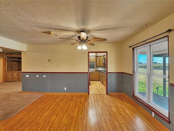 This country home is located on 3.56 acres, just 2 miles from downtown Sayre (2 adjoining properties) This 4 bedroom, 3 bath house has numerous upgrades all geared towards comfort. All the windows are double paned and fold out for easy cleaning. The attic is equipped with “space age” insulation, for superior insulation and durability and 2 large, solar fans for proper venting and a metal roof. Overall, a very energy efficient home. The front of the house has a large covered patio, for those summer get-togethers, or just enjoying the breeze on a warm night. The large kitchen is equipped with a wall oven, countertop glass cooktop stove, microwave, dishwasher, disposal, refrigerator, granite countertops, a movable island and a hanging potrack. A huge utility room has washer & drier hook ups, 1 water heater, 1 soft water filtration, a cellar, a pantry room and still enough space for 2 deep freezes and a refrigerator, should you need them (not included). The living room has a pellet stove insert to keep you toasty warm in the winter without all the mess and hassle of cutting and hauling wood and a built-in entertainment center. Of the 4 bedrooms, one has its own attached bath, with a tiled walk-in shower. The guest bath has a beautiful one-of-kind tile work. The Owner’s Suit is large enough for grand sized furniture and the Owner’s bath rivals anything found in a posh estate. It contains its own, second water heater, its own second, water softener, a corner jetted tub for two, walk in shower, double vessel sinks and plenty of storage. The second living space contains an office area. The back porch has a double swing gate, that can open or close the backyard off from it. The backyard fence has metal posts and a concrete stem wall. In all, the property has 2 wells, 3 septic tanks, a 3000 sqft metal sided barn and 3 sheds. Close enough to town to buy food and gas, yet far enough away to see the stars at night! This property is agent owned. OK Lic#207533