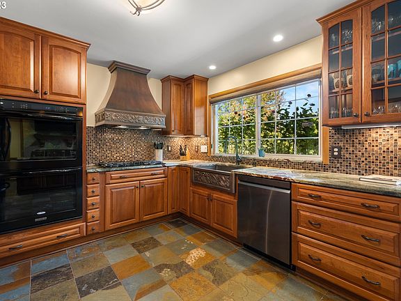 - Features: Bookcases, Builtin Features, Builtin Range, Deck, Dishwasher, Eating Area, Fireplace, Gas Appliances, Island, Convection Oven, Double Oven, Slate Flooring