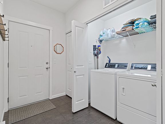 Step into this lovely open-concept condo in the heart of the Pacific Northwest, where modern living meets natural beauty. This well-appointed condo is light and bright with tons of natural light from large windows plus an adorable deck with a bonus storage attached. This condo was fully updated in 2021 with new luxury vinyl plank in the kitchen and both bathrooms, new wall to wall carpet, new light fixtures, closet organizers, a new mini-split and fresh paint. The location is ideal, walk to Market of Choice, restaurants, walking trails and parks! With two full, large bathrooms, the primary suite has a connected bathroom, a soaking tub, and ample closet space. The second full bathroom is across from the second bedroom. Hookups for washer and dryer are in-unit, plus an attached 200 SF garage with a driveway that fits a full-sized car or SUV. Easily park two cars, or leave your car outside and enjoy tons of extra storage! Close to Nike, Intel, St. Vincent and light rail. It's a wonderful community in an ideal location! For a perfect lazy Saturday- put on your trainers and take the walking path to either Barre3, Orange Theory or Star Cycle, then slurp some ramen at Kukai, jump over to Market of Choice for a bottle and some snacks, invite your bestie to watch the sunset on the deck and then curl up in front of the fire with a good book. Rinse and repeat for the perfect Sunday as well!