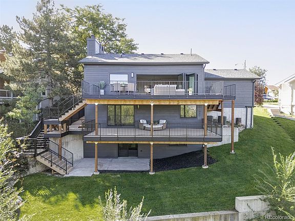 On a corner where homes rarely go up for sale, don't miss your opportunity to own incredible unobstructed views of the entire front range and Maple Grove Resevoir, while still being close to everything you need. This fully permitted remodel leaves nothing untouched - over 1100 square feet of outdoor living space, new windows, new roof, new plumbing, complete electrical rewire, new electric panels, new water heater, two new HVAC and AC systems for optimal temperature on all levels, new insulation, new landscaping, all new appliances, timbertech decking and tiletech pavers. The main floor is complete with 12 foot vaulted ceilings, custom venetian plaster fireplace, designer kitchen with a large island, spacious pantry, cozy office, high-end bathroom and endless natural light. Massive 18 foot accordion doors lead to your main level deck with a custom railing and pavers. The middle level primary suite has direct access to another large deck and has a wet bar right outside the room, perfect for your morning coffee or evening nightcap. Your spa inspired primary bathroom is complete with custom lighting, dual shower heads and a 65" soaker tub perfectly framed with Flatiron views. The middle level also has another bedroom with an ensuite bathroom, laundry and plenty of storage. The finished walk-out basement with a full kitchen gives you options - additional income, great space for visitors, or just a convenient area for your family. Basement kitchen has high end finishes with full sized appliances and flows effortlessly into your living room that is built for movie night. Basement has two bedrooms (one non-conforming), a second laundry room, calming bathroom with dual sinks and a nice shaded patio.