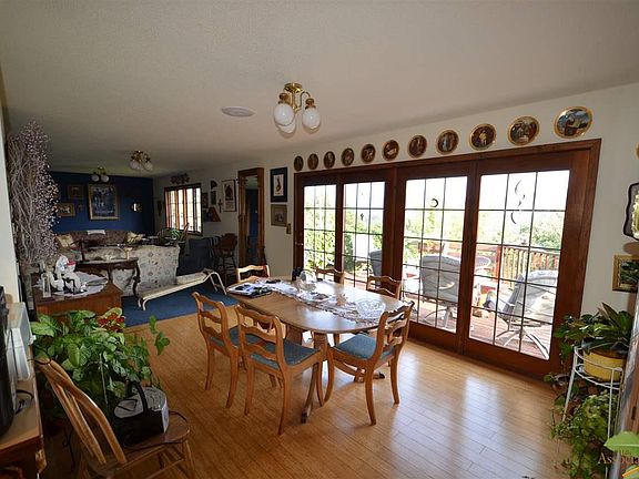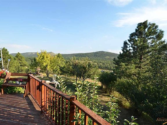 Million dollar views from this very private 3500+ square foot home on 9.65 acres just over 3 miles from city limits of Deadwood with Forest Service on North West boundary. This is a rare opportunity to bring your ATV's and snowmobiles and leave right from home. Main floor living with airy oversized rooms and large windows throughout, allowing in the natural sunlight. After a long day, enjoy the Sauna located within the second detached garage, watch the sunset from your huge wrap around deck with mature vines and trees. This home has recently updated wood floors and new paint. Large kitchen has tons of cabinets, newer stove and refrigerator and separate dining room area. Metal roof, on demand hot water heater, and new insulated garage doors are just a few more of the greater fine details. Main floor includes master suite with large walk in closet and luxurious master bath with skylight, also second large bedroom.