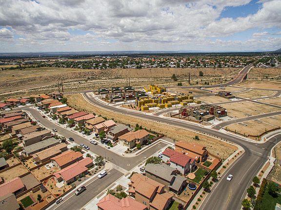 Welcome home to one of the most unique properties in Volterra! Boasting a GREAT floor plan with stunning views of the Sandia Mountains and a roomy backyard with an awesome Fiberglass Swim Spa. Swim all year round! Attached full RV Garage plus an additional two car garage and an oversized workshop make this property truly special. Floor plan has one bedroom downstairs, laminate floors, granite counter tops, stainless appliances, gas hookup in kitchen, refrigerated air, 2x6 construction, upgraded vinyl windows, plenty of skylights, and a fabulous balcony upstairs with removable windows. The backyard has raised beds, lovely landscaping and rain gutters with barrels for the garden.
