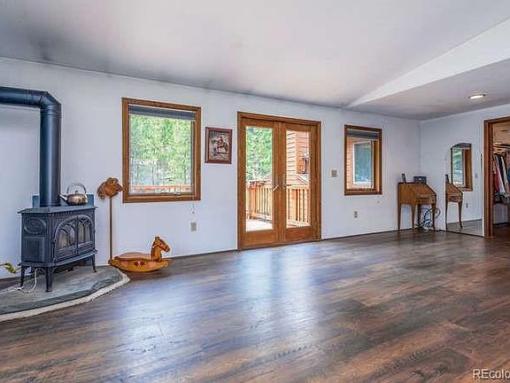 Close to everything! Minutes to grocery stores, gas stations, hiking trails, frisbee golf course and other amenities. The main level has 2 masters (both with large closets and private baths), 3rd bed and bath, along with the living room, kitchen and dining room. There is a gas stove and private deck off the main master. Go ? way downstairs to a sunroom leading to the lower level that has a very large 4th bed (does not have a closet), bath and 2nd family room. 4 fireplaces give a cozy feel throughout, not to mention decreased heating costs. Multiple patios and decks for enjoying this beautiful, flat lot w/ aspen, variety of conifers and lots of privacy. The oversized 2-car garage has a workbench. There is flat space for an RV. Short commute to Denver, gold-medal fishing and world-class skiing!