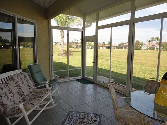Stonecrest 55+ adult gated golf course community with all the amenities and 4 pools. Private roads and manned security gates. 2 miles from The Villages by golf cart as this is a golf cart community. GOLF COURSE FRONTAGE on the tee box ( no golf cart path or golf balls), north back exposure perfect for your lanai. NEW ROOF 10/2019 AND A/C, 12 and 10 ft ceilings through out, golf cart garage, stamped concrete driveway and walk way. 3 bedrooms, 2 bedrooms,and tile through out. NEW ROOF 10/2019, A/C IN 2017, NEW LG APPLIANCES, TANKLESS HOT WATER TANK, FRESHLY PAINTED ON THE INSIDE, GOLF CART GARAGE, NO CARPET (TILE THROUGH OUT), newer master bathroom shower and updated vanities with granite counter tops, sliding acrylic windows in lanai, stamped concrete driveway and walkway. Taxes are based on VA exemption, this home is immaculate and ready for possible quick closing.