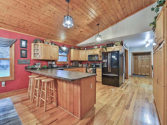 Don't miss this gorgeous four bedroom, three bath home on over 21 acres of high ground. This property features spacious bedrooms, an open floor plan, a custom kitchen, main floor living, a large primary suite, a private deck and a three-season porch, sprinkler system for maintaining the grounds, a 30x40 heated and insulated pole shed with a metal roof, private trails, rock gardens, a newly finished basement with a bar and pool table, and ample room for all entertainment purposes. You will love the privacy that this home has sitting on more than 21 acres of prime hunting land. You will enjoy having all the trails one could ask for to ATV or snowmobile on. This home has everything that you are looking for and more. Schedule your showing today.