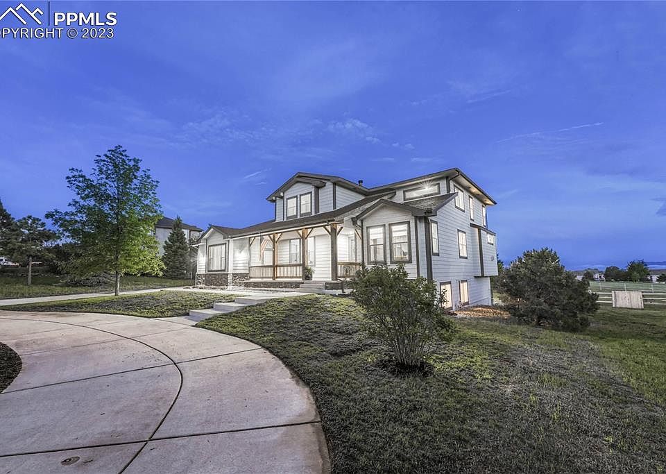 Welcome to your dream home! Completely renovated 4,936 sq ft, 4BD/4BA/4CAR, main floor office & walk-out basement on a .63-acre lot that backs to open space & boasts panoramic views of Pike’s Peak & the Front Range. New roof February 2023. The living room boasts 9’ and cathedral ceilings, sight lines to the deck & backyard, several windows, electric fireplace, ceiling fan & a window seat. A French door leads to the dedicated main level office w/ceiling fan & walk-in closet. The dining room stuns w/mountain views, electric fireplace & dramatic feature wall. The gourmet kitchen offers an island, sleek granite countertops, 2 pantries, gorgeous tile backsplash, message center, brand new high-end appliances & abundant storage. Large windows & walk-out to the expansive deck highlights the mountain views & makes for seamless transitions to the outdoors. Also on the main level is dedicated laundry space w/utility sink & cabinetry. The primary suite, 2 spare bedrooms (both w/ceiling fans & walk-in closets) & a full bath are located upstairs. The primary suite features Pike’s Peak & Front Range views & a large sitting area (home office, nursery or yoga space?) w/windows & arched entry. Adjoining is a spa-like bath w/soaker tub, mountain views, walk-in shower w/multiple shower heads & a walk-in closet. Walk-out basement includes a large family room w/above grade windows, wet bar, large bedroom w/above grade windows, ceiling fans & 2 closets. The full bath has a granite countertop & double vanity. Completing the basement is a storage room w/2 furnaces & 2 water heaters. Note the 4-car garage w/9’ doors, 2 service doors and 12’ ceilings. The outdoor living space provides stunning Pike’s Peak and Front Range views, a fully fenced backyard & the perfect setting to relax, entertain and play! Within 10 min., you can be in downtown Monument, accessing I-25, merging onto Highway 83 or walking the Santa Fe Trail in the shadow of the Front Range.