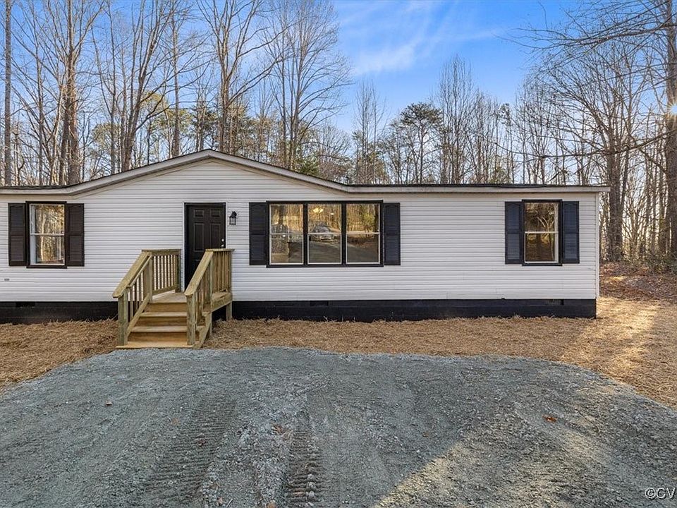 Welcome to this newly renovated house on 2 acres. This house has a first-floor primary bedroom with an on-suite bathroom with a large soak tub, double vanity sinks and a walk-in closet. On the other side of the house are the remaining two bedrooms with a full bathroom. The kitchen comes fully equipped with stainless-steel appliances all convey. The refrigerator is "as is". The kitchen has brand new counter tops. There are new floors in all the rooms. There are new black matching gutters on the outside of the house. This house has a permanent foundation. It is conveniently located and offers a wooded view and a nice back yard.