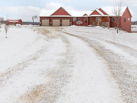 Welcome to this stunning rural acreage offering a beautifully constructed modern home completed in 2016. Nestled in the country in SE Rochester, this property includes 2.14 acres (homestead) and an additional 1.0 acres which includes the old school house. It's perfect for those seeking serenity, space, and modern comfort. The main floor includes the living room with gas fireplace, modern kitchen and dining room, from which you have spectacular panoramic views. It also includes the luxurious master suite featuring a large walk-in closet and en-suite bathroom with soaking tub. Also on main is the office, half bath, laundry and mudroom. Head to the lower level and you will find 3 more bedrooms, 3/4 bath, walkout family room and for additional fun, a media room with stadium seating. The entertainment areas outdoors are spectacular! A deck off the kitchen/dining area, as well as the patio below with hot tub. You can also relax by the firepit and enjoy the views. A large 3 car garage too!