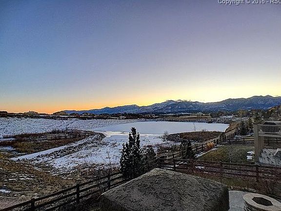 Amazing Pikes Peak, Front Range & water views from this incredible home! Warm, inviting colors throughout embrace you as you walk in. You'll appreciate all the upgrades and love put into this home- extensive wood flooring, gorgeous slab granite kitchen counters, beautiful landscaping, Trex deck, stone accents and upgraded tile throughout. Pikes Peak greets you each morning from your Master bedroom windows. Sit by the fire pit, enjoy the open space and incredible views that remind you daily why you love living in Colorado! Live in the fabulous Flying Horse community and enjoy the close proximity to parks, schools, trails, golf and the Flying Horse County Club Athletic Center and Club House. Just east of the Air Force Academy and only a 40 minute drive to the Denver Tech Center makes this home a perfect place for all to consider!