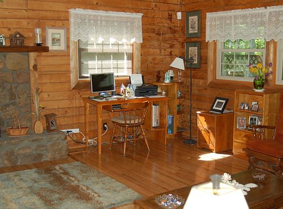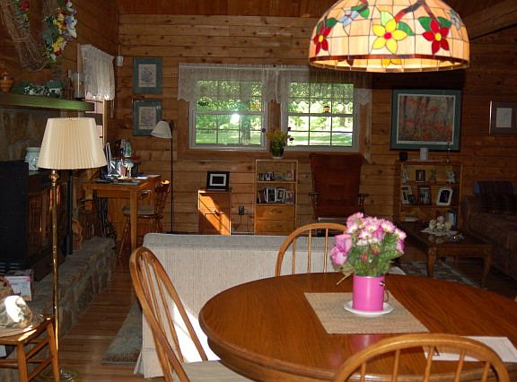 SECLUDED ESTATE...AWAY FROM THE WORLD! This beautiful log house is made out Western Red Cedar that was brought in from Oregon. Living room has stone fireplace with gas logs. Kitchen has granite counter tops and comes with all the appliances. Large pantry off the kitchen. Off the dining area is a sunroom(a room for all seasons). Main level has master bedroom with on suite bath and walk in closet. Second level has two bedrooms and bath. Small sitting area at the top of the stairs. Outside is like a park. There is 24X24 garage/shop in the back with insulation,concrete floor,water and electric. Extra pad for boat and trailer. All electric is under ground. Basement has poured walls and wood stove
