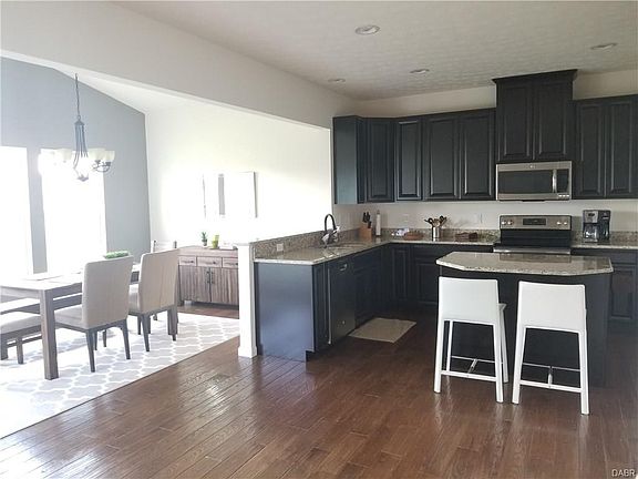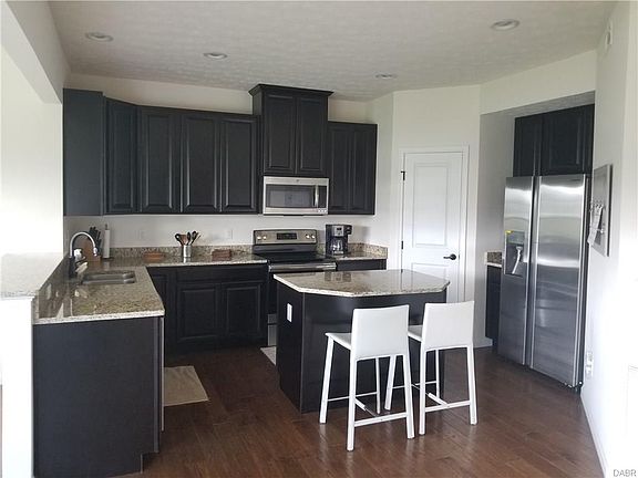 Picturesque 3 bed, 2.5 bath Fairborn home. As soon as you pull up to this home you will notice the meticulously landscaped yard, and the amazing curb appeal. Inside you will find the formal living room, and updated wood flooring throughout the main level. The large open family room flows into the gorgeous eat-in kitchen. Kitchen features huge island, granite counter, SS appliances, modern cabinets and convenient pantry. Off of kitchen there is an additional dining/bonus room! Upstairs features an extra loft area, full updated hall bath & 3 great sized bedrooms (including master suite!). Master showcases a huge walk-in closet, and private master bath with dual sink vanity, soaker tub & tile shower! Full unfinished basement with LOADS of additional square footage. Outside patio overlooks beautiful yard with relaxing pond view!