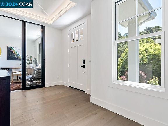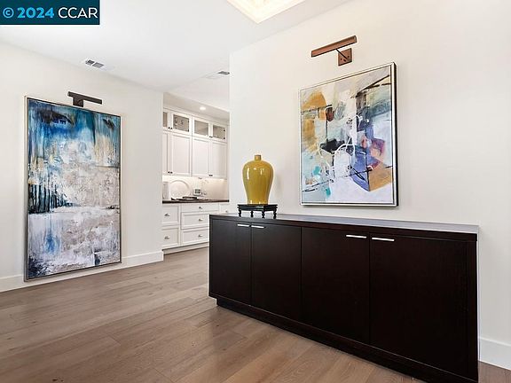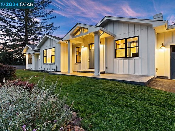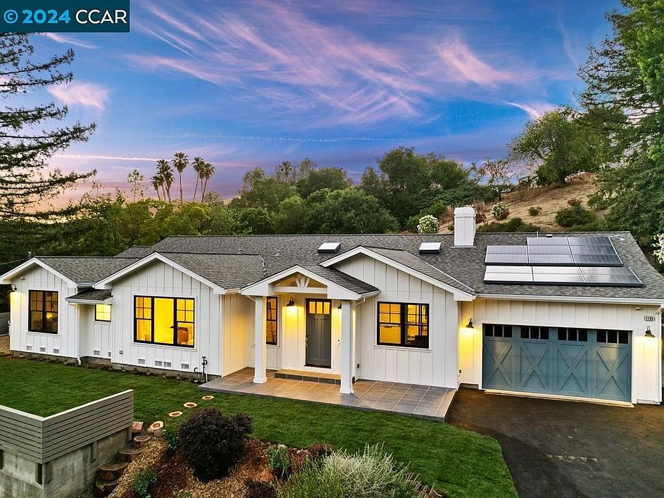 Built in 2021, this modern California ranch style home offers an ideal combination of easy living plus quality & amenities in a premium location. Walking distance to vibrant downtown Lafayette and Bart, yet tucked into this favorite Happy Valley Glen neighborhood, the location is truly special. Enjoy single level living with great yard spaces & views of the hills & nearby vineyards. Features include wide plank engineered hardwood floors throughout, high vaulted 13’ ceilings, beautiful cabinetry and architectural details. Extra tall, raised panel doors, deep baseboards, skylights. Exceptional floor plan with two offices - one located off of entry, plus an additional detached studio shed offering a second work from home space. Stunning great room + separate playroom, showstopper kitchen with two islands, top appliances and a back kitchen/pantry space. Beautiful bathrooms, dream laundry room, lots of built-ins and storage throughout. Primary suite with glass door to a private patio and large windows showcasing the views. Owned whole house solar + Tesla power walls. Private & serene setting at end of cul de sac. Wonderful yard & outdoor spaces incl large lawns, paver patio, swim spa for versatile uses including workout. Garden area, play spaces. Happy Valley Elementary.