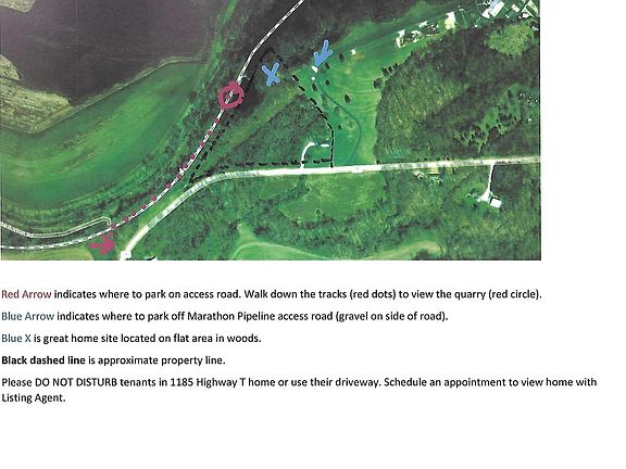 Incredible acreage with breathtaking views of Labadie Bottoms to the north and Fiddle Creek Valley to the south from potential home site at top of property above old quarry. 10.6+ acres with single family home. The existing home has been updated to a 200 Amp electric panel and is being sold AS IS. Owner will either install central electric HVAC and water heater of his choice OR offer $10,000 credit at close. Keep home on site for mother-in-law quarters or additional income (was rented for $650 per month) or tear down in order to subdivide/develop or to create a more private setting for your dream home. Fantastic bluff view and private pond in old quarry (pictures to be added soon). No subdivision fees! Low taxes! Don't miss it!