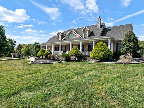 Nestled on a sprawling 73-acre estate at 1185 Jack Smith Road, this custom-built home by renowned builder Doug Martins offers the perfect blend of luxury, privacy, and future investment potential. The property has already been thoughtfully surveyed into five separate tracts, offering the flexibility to sell off individual parcels as out-lots if desired. The estate features between 8 to 10 acres of mature woods, creating a natural sanctuary that directly adjoins 400 contiguous acres of private, undeveloped land. This expansive buffer ensures a level of seclusion that’s hard to find, while the woods attract abundant wildlife, offering residents the opportunity to enjoy nature right in their backyard. The land also includes a cold, crystal-clear freshwater spring, a serene pond, and scenic rolling terrain that together provide an idyllic retreat just minutes from town. The 5,000+ square foot home exudes elegance, from its Brazilian cherry hardwood floors to its soaring 10-foot-plus ceilings and intricate moldings. A grand two-story foyer welcomes you with a stunning wrap-around staircase, setting the tone for the rest of the home. The living room is a showstopper, with 2½-story vaulted ceilings, a magnificent stone fireplace, and a wet bar—perfect for entertaining. The kitchen is a chef’s dream, with custom cabinetry, ample storage, a walk-in pantry, and a full bath that doubles as a storm shelter/safe room. Modern conveniences abound, with a comprehensive security system and a discreet, high-quality surround sound intercom, ensuring the home is both connected and secure. The owner's suite provides a spa-like escape, with heated tile floors activated at the touch of a button, a whirlpool tub, an oversized walk-in closet with custom built-ins, and a private screened-in porch for your morning coffee. Upstairs, you'll find four additional spacious bedrooms, including one with a private bath and two sharing a Jack-and-Jill layout. A media area and a large bonus room with a secondary staircase back to the kitchen complete the second floor. Outside, adventure awaits with a professionally designed motocross track, perfect for enthusiasts. The property also includes a 2-car attached garage, a huge 4-car detached workshop, and NCTC fiber internet access, offering the convenience of modern living in a rural paradise. Whether you're seeking a private estate immersed in nature or a property with development potential, this one-of-a-kind home offers it all.