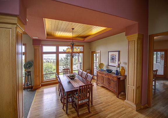 Exquisite Norman Builders custom home in private Hillside Park subdivision; 5 bedroom, 3.5 baths, separate office, high end finishes, impeccable attention to detail throughout; two story open wood ceilings and picture windows allow natural sunlight and panoramic City and forest views; slab granite counter tops and center island in kitchen with stainless appliances; luxurious master suite with radiant floor heat; huge .88 acre lot, a rare find with oversized attached 3 car garage, just minutes from town.