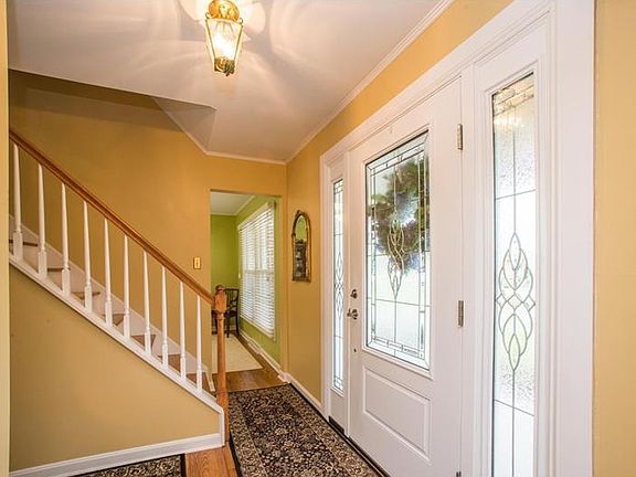 Unbeatable location on cul-de-sac w/pedestrian walk to Upper St Clair Recreation Center at the end of the street! For commuters, this home is minutes to I-79 and just as close to South Hills shopping and dining. Level entry center hall colonial w/updated, sweeping front porch. Exposed hardwoods throughout! Spacious living/dining combo with crown molding and custom built-ins. 1st flr Den. Gourmet kitchen offers cherry cabinets, quartz counter tops, and SS appliances. Kitchen opens to family room w/brick, gas-log fireplace and sliders to partially covered brick patio. (Family rm currently used as dining rm.) All bedrooms on upper level. Owner's suite w/2 dbl closets and private, tiled bath with step-in shower. Bedrooms 2,3 and 4 each have dbl closet. Tiled main bath and lrg linen closet complete upper lvl. Huge unfin LL offers max opportunity to add to living space if desired. Attached 2 car grg has entry into kitchen! Beautifully landscaped mostly level lot w/generous side yard.