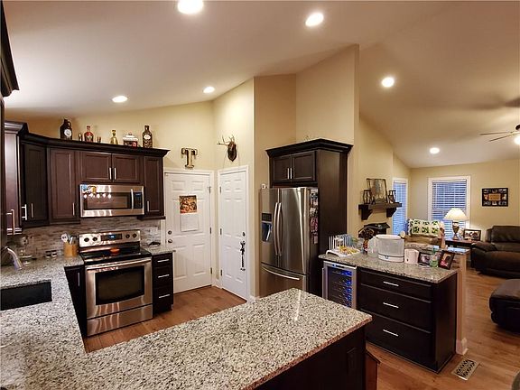 - Kitchen Features: Breakfast Bar, Cabinets Stain, View to Family Room, Stone Counters