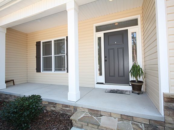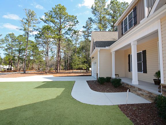 This almost new cottage style home offers 4 bedroom 2.5 baths with a spacious open floor plan. Architectural elements abound with the coffered ceilings,wainscoting, tray ceilings and arched doorways. The main level master suite has a tray ceiling and large walk in closet. In the kitchen you will find beautiful cabinetry, granite countertops, stainless steel appliances, gas range and roomy pantry. Each bedroom has a walk in closet. Enjoy the huge backyard that is perfect for your outdoor entertaining and relaxation. Detached storage for added convenience. You also have access to Whispering Pines Lakes and parks. Sandhills Farm Life and Union Pines school district. Easy commute to stores, schools, and Ft. Bragg.