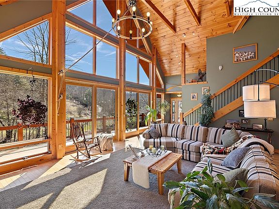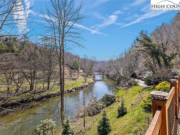 Treat Yourself to this beautiful Mountain Home on the New River, Very rare and fantastic offering just outside Boone NC, 450+ feet on the New River with excellent year round access for fishing, kayaking, and all the water sports. This home is a true Mountain lodge for your family to gather and celebrate here, over 4000 rustic feet await you with outdoor living space also, bubbling hot tub, the outdoor fireplace is a feature with a pizza oven, yes, a pizza oven, covered and uncovered decking to relax an enjoy the views of the river as it flows by. 3 bedrooms 2.5 baths, Master on the main level with a Fireplace, Fireplace in the downstairs guest suite, The Mountain side is covered with flowers and plantings that are about to pop out and be beautiful for 7 months of the year. Swim and Fish in your slice of Heaven, warm yourself by the fireplace in the Master bedroom or the Living Room or the guest suite downstairs....pick your fireplace...Catch your mountain home on the New River,.... Wow....don't hesitate to come and see this beauty.