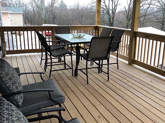 Beautiful updated walkout ranch in a great location. Updated kitchen with new vinyl wood flooring, new stainless-steel appliances, lots of cabinets and large pantry. Three spacious bedrooms with generous closet space and natural oak wood floors. The main living room includes new fabric blinds and natural oak wood floors. The main level bathroom has new flooring and updated lighting, faucet and fixtures. Lower level includes spacious family room, full bath, storage area and laundry room with new washer and dryer. Large new covered green treated wood deck off the kitchen allows you to enjoy the private country like large backyard – it would make a great 4 seasons room! Covered deck also acts as a car port. Plenty of wildlife to see throughout the year; deer, turkey, and more. New siding and deck in 2017. Outside relax on the patio or next to a soothing fire in the brick fire pit. Enjoy the above ground hard side saltwater pool with green treated decking during those steamy summer days. It's a perfect family home with great opportunities for indoor and outdoor entertaining.