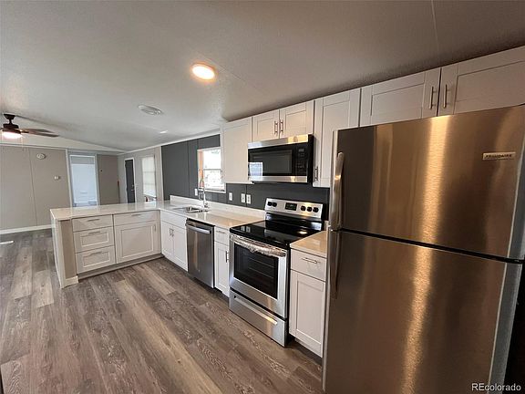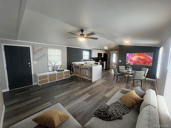 Central location! Situated where Mississippi Ave meets Sheridan Blvd, this beautifully remodeled mobile home. The home features 2 bedrooms, 2 full bathrooms, a large living room, a kitchen with a gorgeous new waterfall countertop, stainless steel appliances, and modern cabinets. The backyard has tons of potential for entertaining! Schedule your showing today!