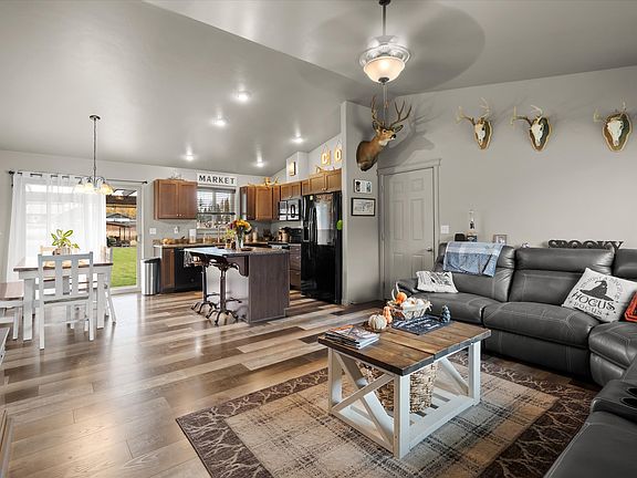 Discover this inviting 4-bedroom, 2-bathroom rancher in the desirable Halfmoon Meadow neighborhood, situated on a large 1.24-acre lot with boundless potential. Enjoy this single level rancher with open-concept living, vaulted ceilings, a spacious kitchen featuring a large island and granite countertops, and an ensuite master with a custom-tiled shower. The outdoor space is perfect for relaxation and entertainment, boasting a pergola-covered back patio with a clear cover, a goldfish pond, and a fire pit wired directly to the house for speakers. Green thumbs will appreciate the irrigated, fenced garden. Additional features include a powered 12'x16' shed and conduit installed for a potential shop location. The neighborhood offers a walking path and breathtaking views of the surrounding mountain ranges.This property could serve as a possible short-term rental with county approval. Ideally located between Whitefish and Columbia Falls, and just a short drive from Kalispell, Glacier International Airport, Glacier National Park, and Whitefish Mountain Resort. Call Alden Blaize (406) 407-7509 or your Real Estate Professional.