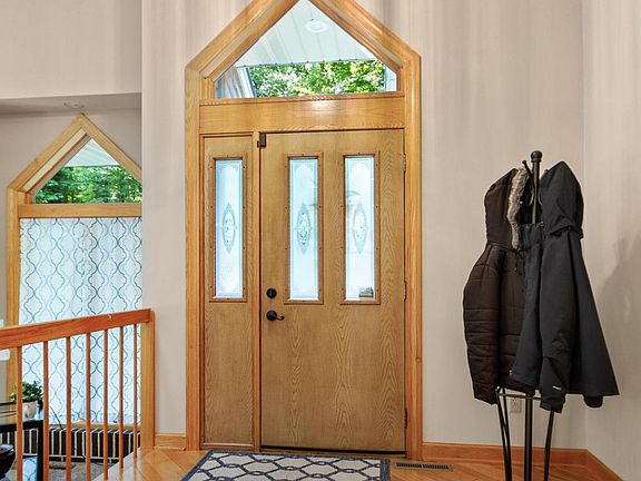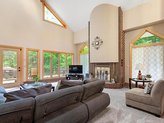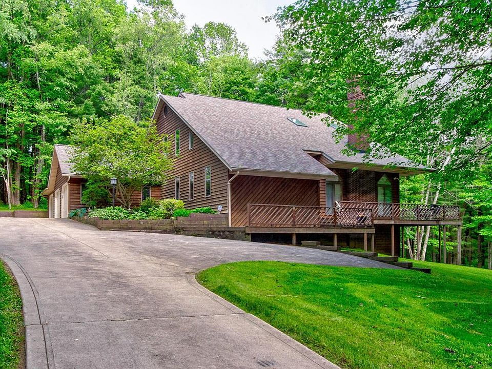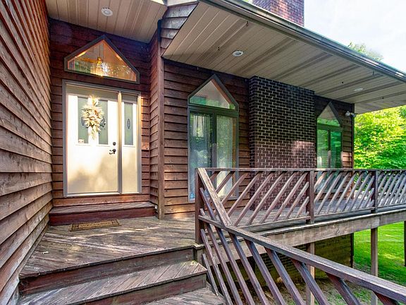 Custom built one of a kind contemporary cedar sided home offering 360 of seclusion with over 11 acres of mostly woods. Steve Boliantz's architecture design represents airy & spacious with simple lines and intriguing various shapes all blended together creating an artistic yet comfortable lifestyle. Two story soaring ceiling great room with floor to ceiling WB fireplace. Owner's suite loft offers curved dual vanities, whirlpool tub, walk-in closets & the loft landing lends itself for an office space. Enjoy the views of nature on the large wraparound deck & heated sunroom. 3.5 car garage and 16x24 barn. The walk out lower level is partially finished with 4th bdrm ensuite.