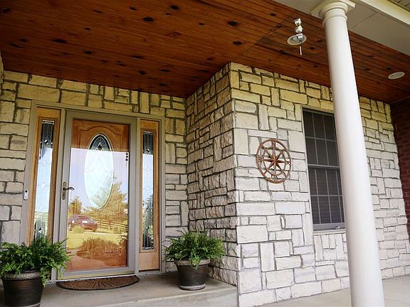 A hidden gem in the peaceful countryside of Sparta, Kentucky! This beautiful custom built 4 bedroom ranch sits on 10+ acres and features a large walkout basement with french doors, a large deck & covered patio area with stained pine ceiling & ceiling fan. Gorgeous ash hardwood floors in the entry & kitchen. Stained pine doors & trim throughout. Large kitchen features hickory cabinets, an island with a gas stove and a raised countertop area for barstools. Jacuzzi tub in Master Bath. Full bath rough-in in basement. Property includes a 30x40x10 insulated pole barn with electric. Must-see!