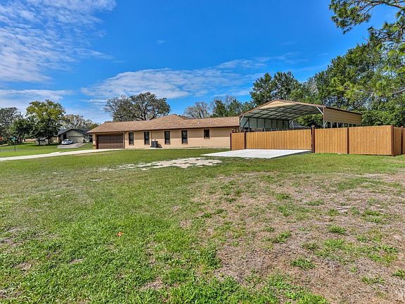 Location Location Location !!!!! Beautiful Updated 4/2/2 and Den Or Bonus Room Pool Home . Plus RV& Boat Metal Covered Parking Pad with electric. Situated on over half acre Corner Lot . Custom Fenced in Yard with double Gates . Light & Bright Open Great Room Floor Plan . Kitchen open to Family & Dining room . Spacious master with vaulted ceiling . Master bath with custom shower Full Body shower heads . double sinks walk-in closet . Additional bedrooms generously sized as well . 2nd Bath has separate shower and shower/tub combo and double sinks as well . Freshly Painted inside and out . Pocket sliders overlooking gorgeous Screened In Diamond Brite Pool with outdoor kitchen covered Patio .Hurricane protection tint on all windows and sliders. A Must See!!!