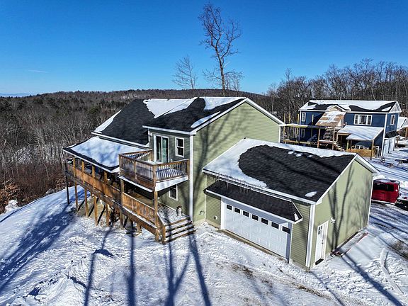 Step into this recently built, modern home just 2 miles from the shores of Lake Dunmore. Whether you enter through the spacious heated two-car garage or via the wraparound deck, you'll be greeted by an open concept main floor featuring vaulted ceilings and expansive west facing windows that create a stunning atmosphere. The seamless transition from the well equipped kitchen to the living and dining areas makes it easy to relax with family or host friends. The first floor also includes two bedrooms and a full bathroom with washer and dryer, offering true single level living. Upstairs, overlooking the main living area, you'll find the primary bedroom suite. It features a tiled walk-in shower with a double vanity and a large walk-in closet. Looking for additional space? Head downstairs to the finished walkout basement, where you'll discover a fully equipped accessory living area; ideal for multi-generational households, short or long term rentals, or guest accommodations. With over 1,000 square feet of living space and its own kitchen, this area offers ample comfort and private exterior access. Outdoors, the partially covered wraparound deck delivers sweeping views of the Adirondacks and Lake Champlain all year round. No matter if you're a fan of snowy winter scenes or vibrant fall foliage, this spot is perfect for you. Schedule your showing today!