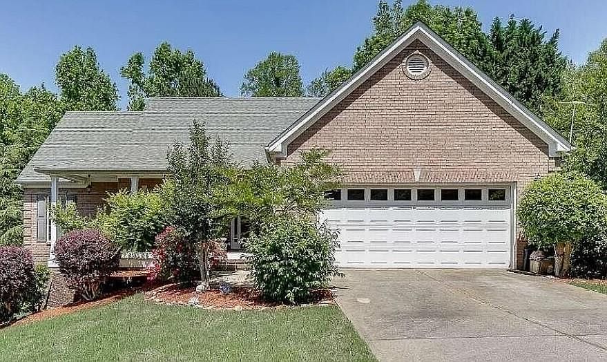 This charming ranch home with a finished terrace level offers endless possibilities and is ready for your personal touch! Relax on the rocking chair front porch and imagine this home's potential. Upon entry, the dining room greets you with beautiful custom trim work, setting the stage for a warm and welcoming interior. The family room features a vaulted ceiling, stylish door niches, and a double-sided fireplace that adds character to the space. The kitchen boasts white cabinets, granite countertops, a breakfast bar, and plenty of counter and cabinet space. It also has a clear view into the family room, which is ideal for family gatherings or entertaining. Two spacious secondary bedrooms and a full bath with dual vanity complete the main level. The finished terrace level is perfect for multi-generational living or a second family. The covered patio below provides additional shaded outdoor space for relaxation. Conveniently located in a quiet neighborhood with easy access to I-85, this home offers charm, character, and endless potential for the right buyer.