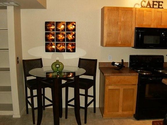 Studio condo available in the Arbors. Unit is unfurnished. Laminate wood look flooring through out. Tile back splash has been added to kitchen and bath. Private and quiet. Includes main living area, breakfast nook, kitchen, and bathroom. Great location. Close to NAU, downtown, hiking trails, shopping, and dining. Unit is directly on the bus line and has one dedicated covered parking space . Water, trash, and HOA included. Tenant responsible for electric, gas, and internet/cable. Two year lease minimum. Background and credit check required. (Pictures shown with furniture for illustration only). Tenant responsible for electricity, gas, internet/cable. Water and trash is included.