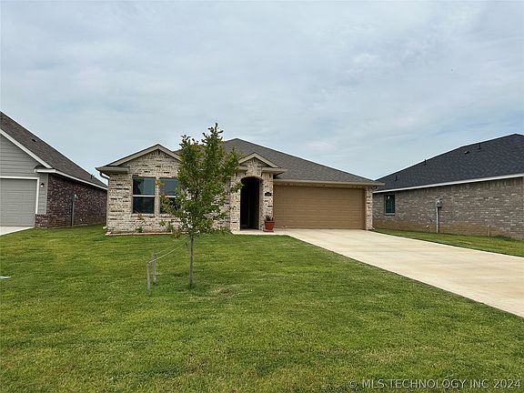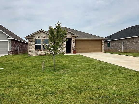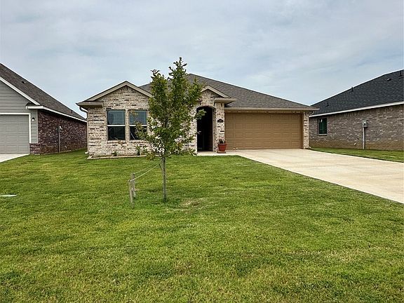 Motivated Seller - Spec to custom built house located in Prairie Reserve, Calera. Built in 2022, this nearly new home has so many nice amenities. 3/2/2 - pretty neutral colors, carpet in MBR and wood tile throughout the rest of the house. Greet your guests in the nice entry way with coat closet before entering the cozy living room. Open living/kitchen/dining will keep everyone together and the fun flowing. Split BR plan with nice Master Suite. You will love the custom tiled shower and full bath. Master Bath features a knee space and large closet. The kitchen has an island for added seating and a large pantry. All the home appliances will remain! Self contained laundry room with hanging space and storage. Lots of natural lighting throughout. Very nice covered patio (patio furniture stays with the house!) and very nicely landscaped yard. Peach tree, rosemary, oregano, green chilies, clematis and several perennials. High quality privacy fence adds to your privacy. 5-zone sprinkler system. This home is found on an attractive cul-de-sac for minimal traffic. Less than a mile to Choctaw Casino, 10 minutes to Lake Texoma or 15 minutes to TX.