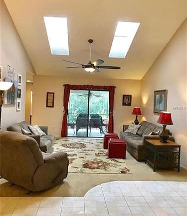 BEAUTIFUL SINGLE STORY HOME!!! This home has a great 3 bedroom, 2 bath split plan. Enter house into Vaulted ceilings to the separate living and dining room areas. Kitchen with solid oak cabinets opens to the family room. Large master suite featuring separate vanities, a garden tub, recessed lighting and a separate walk-in shower. The guest bath has been upgraded with granite counter tops and recessed lighting. Spacious covered lanai to entertain and enjoy which can be accessed from the living room and family room. Home is located on a premium lot with no rear neighbors or neighbors to one side for maximum privacy. Additional upgrades include new A C system in 2016; All new windows 2017; new gutters 2017; interior paint 2015 and exterior paint 2018. Community amenities include: two pools, basketball courts , two tennis courts, racquetball court, playgrounds, picnic areas and a clubhouse.
